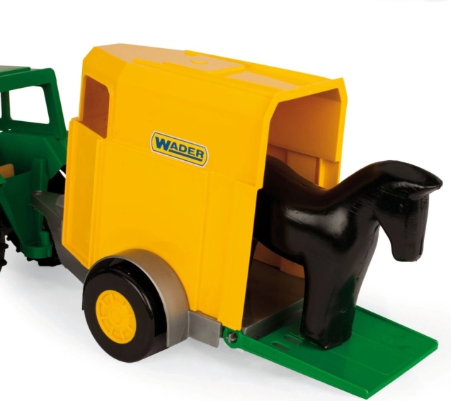 Trattore della serie Color Cars con rimorchio per cavalli. Il veicolo si distingue per la riproduzione realistica, la solida lavorazione, la struttura leggera e robusta e la facilità di utilizzo. Il set include un rimorchio apribile con rampa pieghevole e una figurina di cavallo. Il trattore ha elementi mobili per rendere il gioco più vario, come cabina e cofano sollevabili e asse anteriore sterzante. Giocare con il trattore e il rimorchio amplia le conoscenze dei più piccoli sul mondo che li circonda: i nostri bambini impareranno come vengono trasportati gli animali e porteranno rapidamente le loro figurine in giro per casa o le accompagneranno in gita al parco o in giardino.