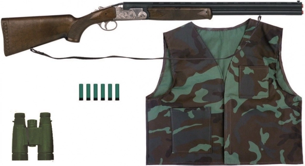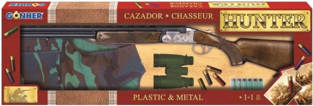 Set fucile a gilet Gonher, ideale per piccoli cacciatori. Il fucile è realizzato in plastica resistente e metallo, con la possibilità di inserire capsule per effetti sonori più realistici.