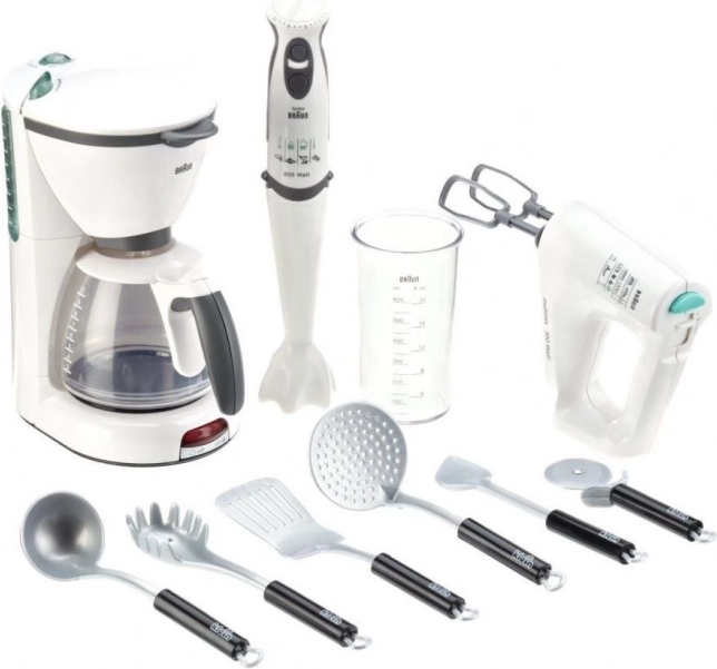 Divertiti con il mega set da cucina Braun. Questo set è ideale per tutti i giovani cuochi che vogliono imitare i loro genitori in cucina: