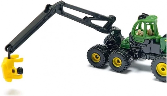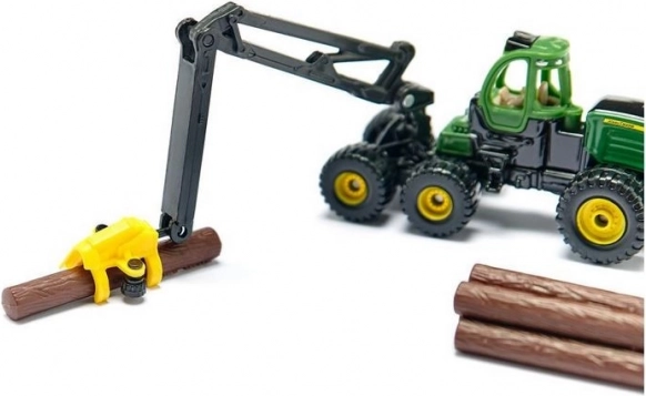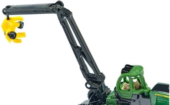 Il braccio di sollevamento mobile consente di sollevare liberamente i pali di legno. Gli pneumatici in gomma permettono un facile movimento su superfici preparate manualmente. Il modello è realizzato in metallo con parti in plastica. Il palo di legno è incluso nella fornitura. Divertimento eccellente per i bambini piccoli e modello da collezione accattivante.