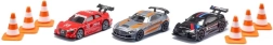 Quanto al design, tutti e tre i modelli riproducono fedelmente gli originali: la Mercedes sfoggia la speciale verniciatura AMG originale in grigio opaco con dettagli arancioni. L’Audi brilla nel noto rosso RS e la BMW colpisce con un elegante nero opaco e le tipiche strisce da corsa M. Sono inclusi anche sei coni arancioni e bianchi con cui è possibile delimitare il tracciato di gara.