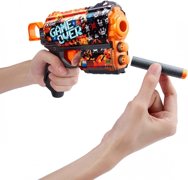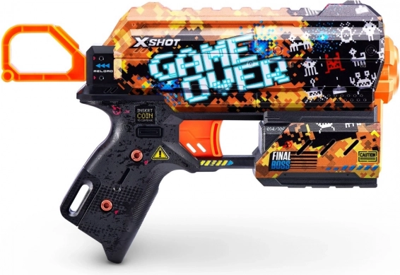 Porta lo stile dei videogiochi nelle battaglie con la pistola X-Shot Skins Flux nel tema Game Over. Grazie alla tecnologia di stampa all’avanguardia, il blaster risulta estremamente attraente, mentre le forme ergonomiche e la struttura leggera garantiscono un controllo confortevole anche durante le sessioni più lunghe.