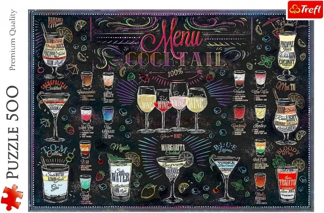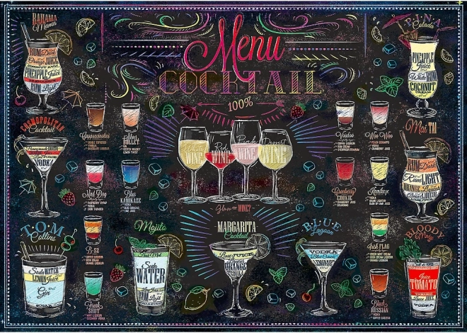 Puzzle alla moda con motivo della carta dei drink per momenti di relax a casa. Contiene 500 pezzi e, una volta completato, crea un’immagine di 480 × 340 mm. Realizzato con materiali di qualità ed ecologici e con carta calandrata speciale, che riduce i riflessi e facilita l’assemblaggio. Prodotto in Polonia.