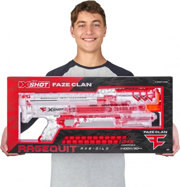 L’edizione speciale FAZE CLAN x X-Shot porta gli scontri a un livello superiore. Il corpo trasparente del blaster ha un effetto futuristico e ti permette di vedere come l’arma lavora a ogni colpo. Grazie alla ricarica pump‑action, il controllo è fluido, rapido e affidabile.