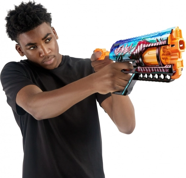 Il blaster X-Shot Skins Griefer THRASHER unisce stile, prestazioni e divertimento in uno. Il cilindro rotante ospita 6 dardi, così sei pronto a sparare senza inutili pause. Grazie al design ottimizzato e alla tecnologia X-Shot di qualità, il blaster offre ottima precisione e una gittata fino a 27 m.