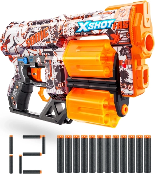 Porta a casa l’atmosfera d’azione del tuo mondo di gioco preferito con il lanciabiglie Skins Dread Sonic the Hedgehog. Tutti i fan della serie Sonic the Hedgehog possono ora vivere duelli emozionanti grazie a questo blaster unico.