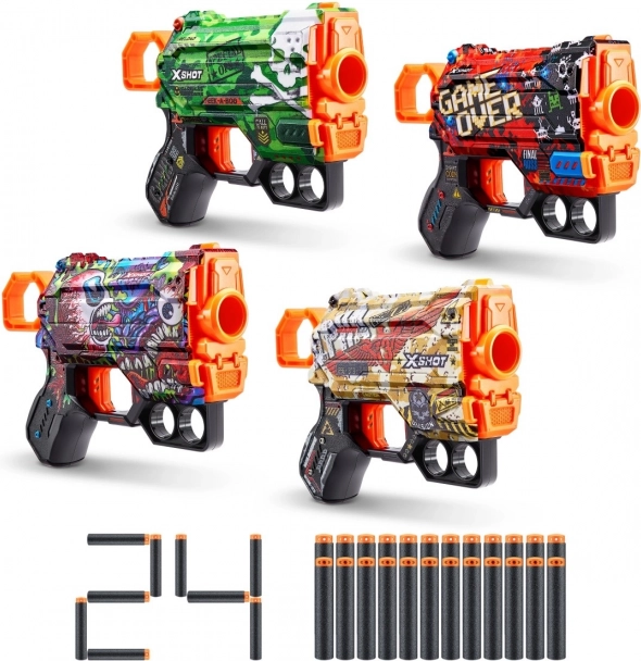X-SHOT Skins porta il mondo della personalizzazione videoludica nella realtà. Questo conveniente Menace 4 Pack offre quattro blaster compatti con design unici, con cui brillerai in ogni battaglia. Grazie alla struttura leggera, all’impugnatura sicura e alla ricarica rapida, sono ideali per i bambini e per sfide divertenti con gli amici.