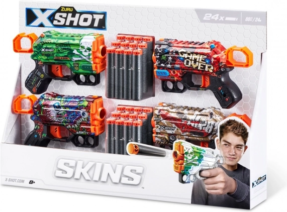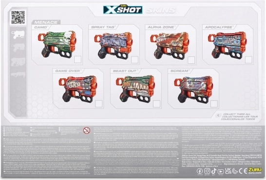 Affina il tuo stile sul campo di battaglia grazie alla tecnologia di stampa X-SHOT SKINS. Nel set trovi i design Camo, Game Over, Scream e in più l’esclusiva skin Alpha Zone.