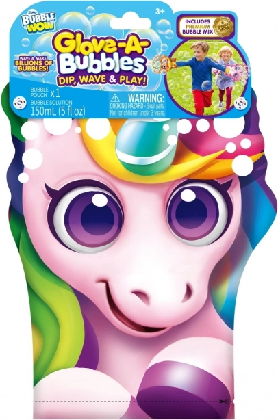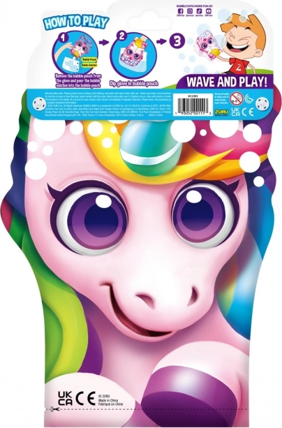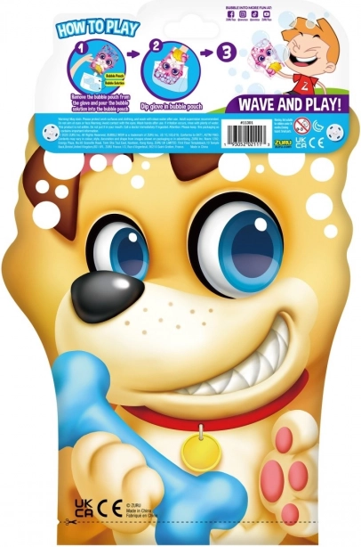 L'uso è semplice: apri la bustina con la soluzione, indossa il guanto, immergilo e agitalo nell'aria — le bolle inizieranno a formarsi subito. Perfetto per giardini, parchi e feste per bambini. Dopo il gioco richiudi la bustina e conservala per la prossima volta.