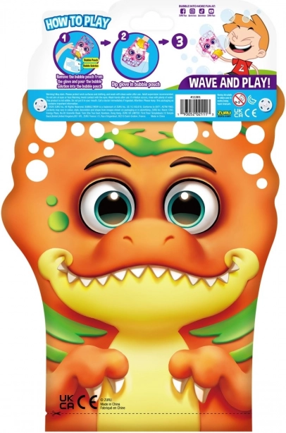 Ogni pezzo include un guanto e una bustina di soluzione per bolle in una pratica confezione richiudibile, così puoi giocare ovunque e in qualsiasi momento.