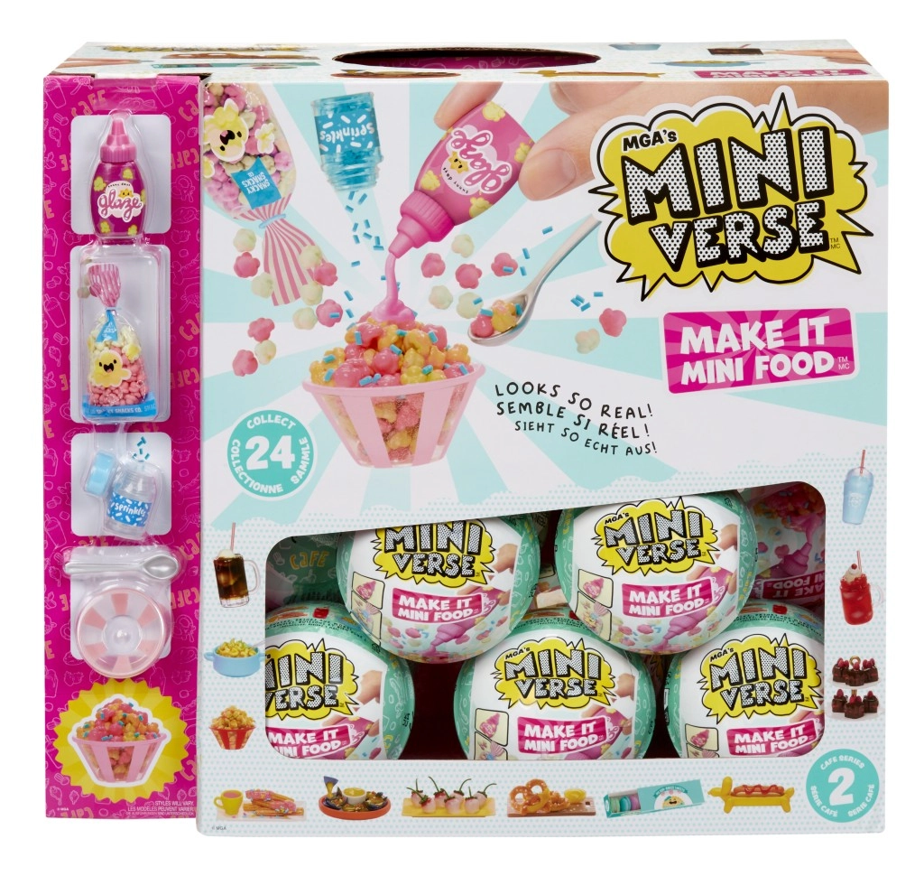 Scopri Miniverse MGA, Make It Mini Food! L’unico oggetto collezionabile in miniatura di cibo che puoi PREPARARE, CREARE E REALIZZARE. Ogni sfera contiene ingredienti mini realistici e accessori da cucina con cui puoi creare repliche in miniatura dei tuoi snack e dessert preferiti!