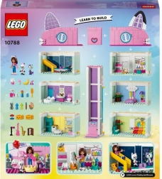 Immergiti nel mondo del divertimento con la Casa di LEGO di Gaby il Gatto, pensata per bambini dai quattro anni in su. Questo coloratissimo playset offre otto stanze diverse collegate da un ascensore scorrevole. I bambini possono cucinare in cucina, giocare sullo scivolo nella sala giochi, creare nell'atelier o divertirsi a feste sul tetto. Immagina avventure con personaggi popolari come Gaby, Caticornus Pandusius, Lakotus e Sirenkitty.