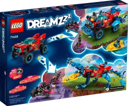 LEGO DREAMZzz Auto Coccodrillo porta il mondo emozionante dei sogni nei giochi dei bambini. Questo set permette ai bambini dagli 8 anni di costruire e trasformare un veicolo unico che aiuterà a salvare Jayden dal perfido Cacciatore Notturno.