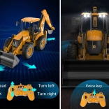 Realistico caricatore/bulldozer RC in scala 1:20 ispirato ai mezzi JCB, porta tanto divertimento in casa e all’aperto. Il controllo a 2,4 GHz garantisce una guida fluida avanti/indietro e sterzata sinistra/destra. Solleva e abbassa a distanza la lama anteriore, ha luci in cabina e suoni realistici del motore. Il battistrada in gomma degli pneumatici aumenta aderenza e stabilità su diverse superfici.