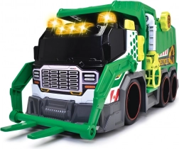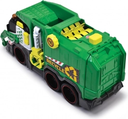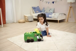 Camion dei rifiuti Camion dei rifiuti con funzione luminosa e sonora. È dotato di sollevatore automatico per i bidoni della spazzatura, pinze, fermo meccanico per i rifiuti e nella dotazione è incluso un cestino per i rifiuti.