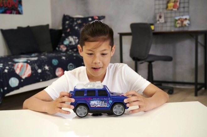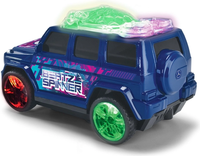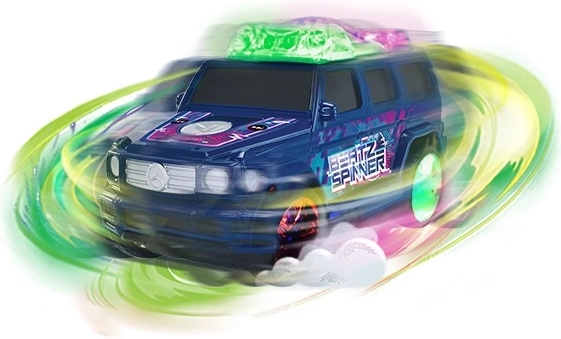 Scopri un mix unico di musica, luci e movimento. Beat Spinner, dal design del fuoristrada Classe G, offre ai bambini uno spettacolo travolgente: alterna le manovre Spin (rotazione su se stesso) e Bump & Go (avanza e, in caso di urto contro un ostacolo, cambia direzione). La durata di guida si imposta facilmente su 15 o 60 secondi.