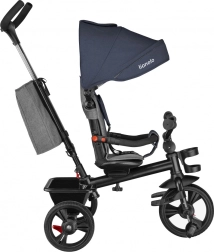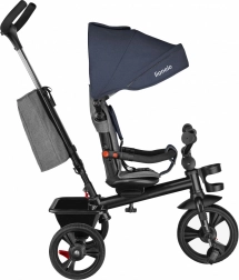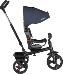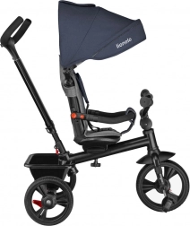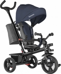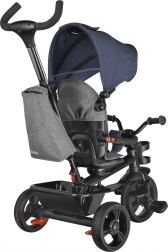 Il triciclo per bambini universale LIONELO Haari Jeans cresce con il bambino da circa 18 mesi fino a 5 anni (fino a 25 kg). Offre un sedile girevole a 360°, controllo genitoriale con manico regolabile, cappottina pieghevole contro sole e pioggia leggera e ruote in PU esenti da manutenzione con ottima aderenza. Per la sicurezza non mancano cinture a 3 punti, barra di protezione rimovibile e freno di stazionamento.