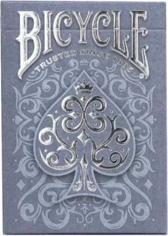 Eleganti carte da gioco Bicycle Cinder ispirate al fumo misterioso del focolare, con un sofisticato design grigio arricchito da lamina argentata lucida e rilievo 3D. Le calde tonalità dorate delle figure evocano braci ardenti e la confezione è completata da un sigillo di chiusura originale.