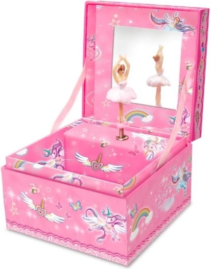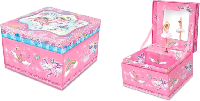 Questo bellissimo portagioie a tema unicorno è ideale per riporre piccoli tesori e gioielli. Una volta aperto il coperchio, l'unicorno inizia a danzare al ritmo di una melodia classica. Alla fine della melodia, basta caricare di nuovo il meccanismo per un'altra riproduzione.