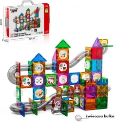 Grande set di mattoncini magnetici luminosi. Contiene 168 pezzi. Biglia luminosa.