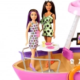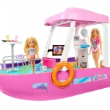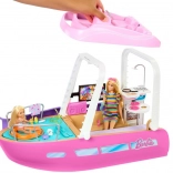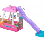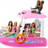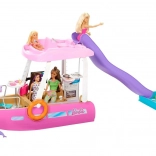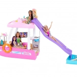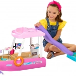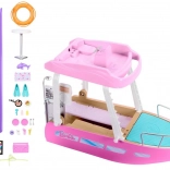 Questa barca dal design elegante, di dimensioni approssimative 91 cm di larghezza e 30 cm di altezza, offre tantissimo spazio per le bambole e i loro amici. I bambini possono pilotare la barca sul ponte superiore, rilassarsi al sole e scivolare sulla scivolo viola direttamente nella piscina blu. Il piano superiore removibile rende accessibili gli interni dettagliati per un gioco facile e coinvolgente.