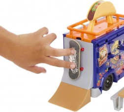 Unisciti all'adrenalina dello skateboarding con il set skateboard Taco. Questa straordinaria combinazione di camion blu e arancione con un grande taco sul tetto consente trick fantastici e funge da deposito portatile.