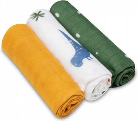 Il set LIONELO Dino comprende tre morbidi pannolini in tessuto 100% bambù, che si distinguono per l'eccezionale morbidezza e traspirabilità. Grazie alle proprietà naturali del bambù, offrono comfort al bambino in ogni stagione e sono delicati anche sulla pelle sensibile dei neonati.