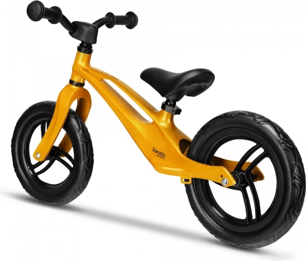 Bicicletta Senza Pedali Bart Goldie è la scelta ideale per i bambini dai 2 anni. Con una struttura moderna in magnesio, pesa solo 3 kg, il che facilita la manipolazione e l'apprendimento dell'equilibrio. Il sedile e il manubrio regolabili in altezza consentono di crescere con il bambino e le ruote in EVA garantiscono una guida sicura e fluida.
