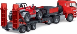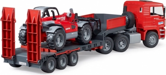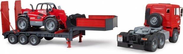 Questo robusto set combina un modello realistico del camion MAN TGA con rimorchio ribassato e un dettagliato caricatore telescopico MANITOU MT633. I bambini apprezzeranno elementi funzionali come gli specchietti ripiegabili, il cofano apribile, il parabrezza resistente, le rampe mobili e i supporti del rimorchio. Il caricatore dispone di un braccio telescopico estensibile e regolabile in altezza e di una benna rimovibile: pronto per qualsiasi sfida di cantiere.