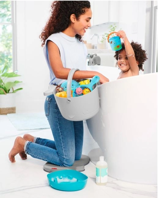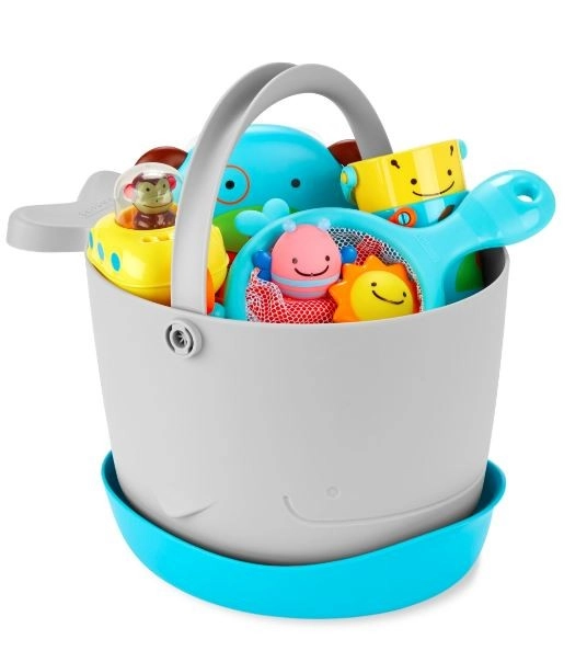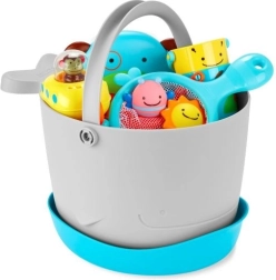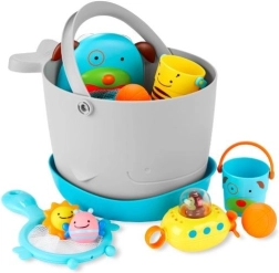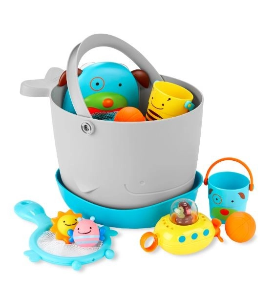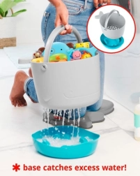 Rendi il bagnetto un rituale divertente con il set SKIP HOP con 10 pezzi per bambini da 9 mesi. Il pratico secchio con base di sgocciolamento separata facilita l’asciugatura, mentre i giocattoli a forma di animaletti, il retino per pescare, il sottomarino Scimmietta e il canestro da bagno sviluppano motricità e fantasia. Le ampie aperture di drenaggio e la facile manutenzione garantiscono igiene e ordine in bagno.