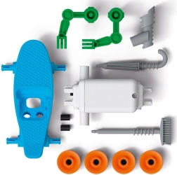 - motore con riduttore e modulo batteria, parti del robot, adesivi colorati, manuale