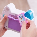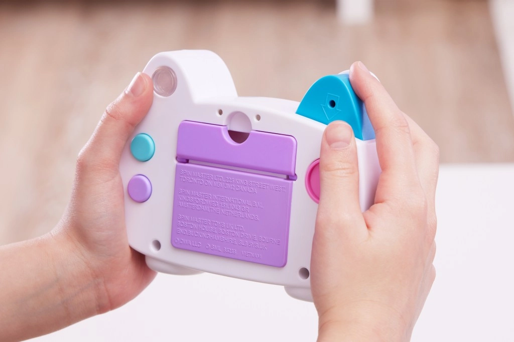 Entra nel mondo della fantasia con la fotocamera giocattolo Kitty Camera dall’universo di Gabby’s Dollhouse. I bambini possono inserire tre “fotografie” di plastica, guardare nel mirino e, premendo il pulsante, vedere la gattina ammiccare e “sputare” l’immagine. Elementi realistici, come i pulsanti colorati da premere e le rotelle da girare, rendono questo giocattolo la scelta ideale per i bambini in età prescolare.
