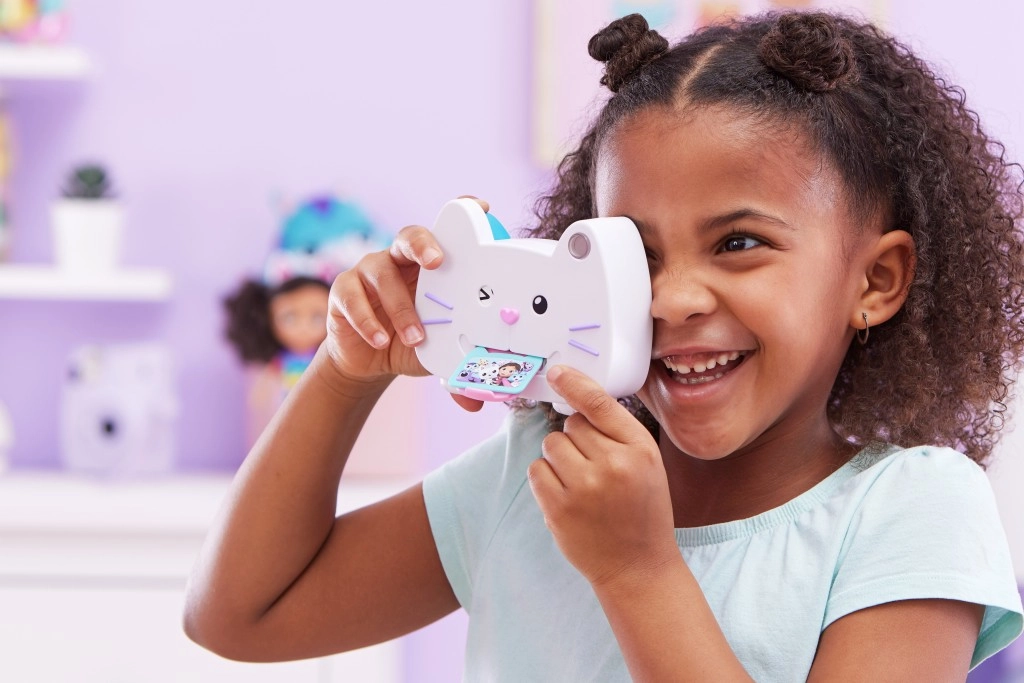 Guarda nel mirino, premi il pulsante e osserva la gattina che fa l’occhiolino mentre dalla bocca esce una fotografia di plastica – proprio come nel mondo di Gabby.