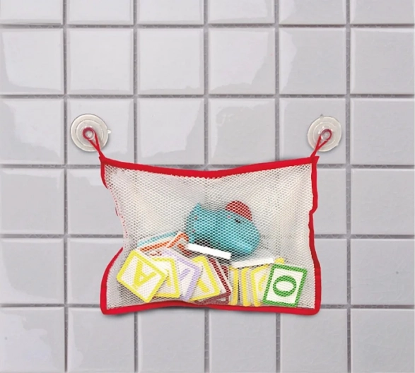 La rete portaoggetti con ventose facilita l'organizzazione e l'asciugatura dei giocattoli nella vasca da bagno.