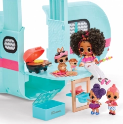 L.O.L. Surprise! Glam N' Go Camper è il veicolo più incredibile per le tue bambole L.O.L. Surprise, con cui possono viaggiare con grande stile. Il caravan include oltre 50 sorprese da scartare, più di 10 aree per incontrarsi ed è adatto sia alle fashion doll LOL Surprise OMG che alle bambole LOL Surprise. La parte posteriore del caravan si apre. Al termine del gioco, tutti gli accessori e gli oggetti possono essere riposti all'interno.