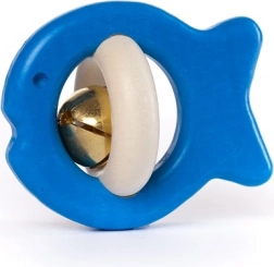 Leggero sonaglio in legno BAJO a forma di pesciolino con campanellino di colore blu, progettato per le piccole manine dei bambini. Tintinna delicatamente, stimola la curiosità e sviluppa la motricità fine. Adatto ai bambini da 6 mesi.