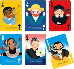 Scopri le carte da gioco Mudpuppy Piccolo Artista con ritratti illustrati a colori di creatori ispiratori. La confezione include 52 carte + 2 jolly, è realizzata con carta riciclata al 70% e stampata con inchiostri atossici. La pratica scatolina a cassetto garantisce una facile conservazione. Ideale per 2–4 giocatori e bambini dai 4 anni.
