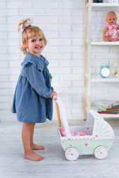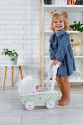 Questa carrozzina in legno per bambole è un giocattolo ideale per i bambini che amano il gioco di ruolo e prendersi cura delle loro bambole. Realizzato in legno di qualità con un bel design, offre un gioco sicuro e divertente.