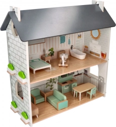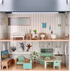 La casa delle bambole è progettata per incoraggiare il gioco creativo e immaginativo. È composta da due piani dove i bambini possono divertirsi creando le proprie storie e scenari. Il materiale in legno assicura una lunga durata e sostenibilità.