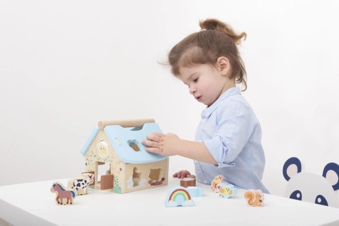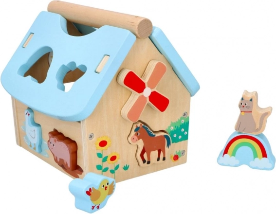 Ogni dettaglio della casetta, dal tetto blu ai motivi colorati, è pensato per intrattenere i bambini e aiutare il loro sviluppo. L'aspetto è amichevole, con figurine animali realistiche che stimolano l'immaginazione.