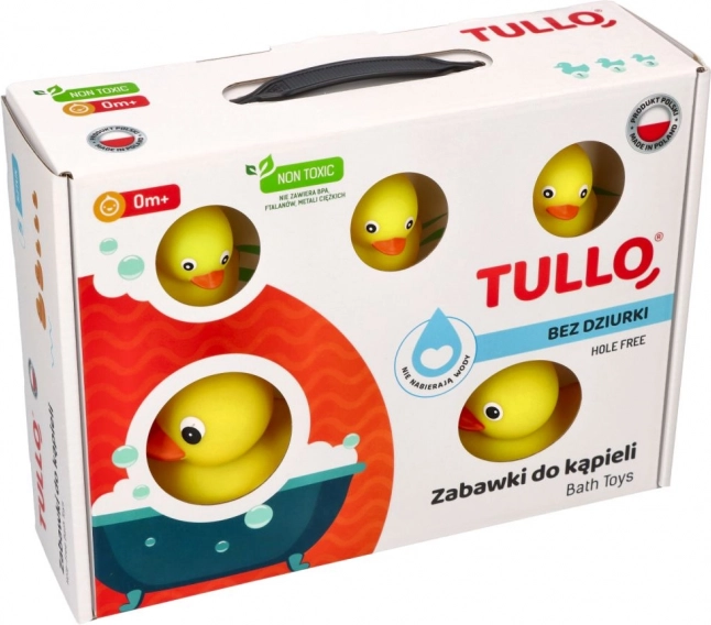 Una graziosa famiglia di paperelle da bagno in un pratico set da 5 pezzi trasforma ogni bagnetto in un momento di gioia. Le paperelle galleggiano sull'acqua, sono disponibili in due dimensioni per un divertimento ancora maggiore e la loro facile manutenzione e la certificazione CE faranno felici i genitori.