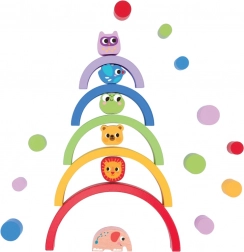 Impilare gli archi e bilanciare gli animaletti allena la presa, la precisione e la coordinazione occhio–mano. Ideale per i primi giochi di costruzione e per una concentrazione paziente.