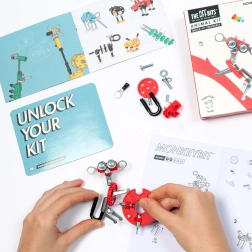 Il kit di costruzione The OffBits OpiceBit offre un approccio ludico all’apprendimento. Con componenti colorati, viti e pezzi sagomati, i bambini montano un modello di scimmia e poi possono sperimentare con creazioni personali. Nella confezione è incluso anche un pratico attrezzo, per cominciare a creare subito dopo aver aperto la scatola.