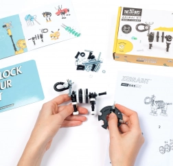 Grazie al SuperTool incluso e alle istruzioni chiare, l’assemblaggio è semplice e divertente. I pezzi possono essere combinati con oggetti d’uso quotidiano (cartone, viti, ecc.), quindi le possibilità di costruzione sono praticamente illimitate.