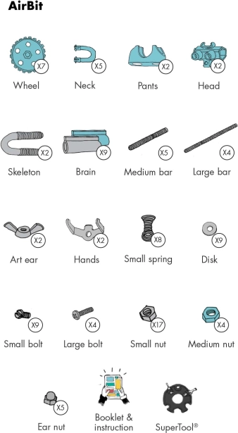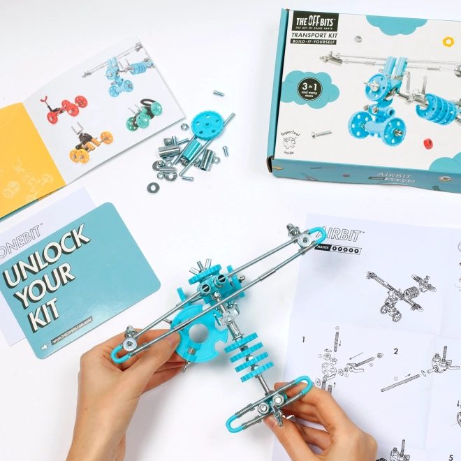 Scopri il mondo del divertimento costruttivo con The OffBits AereoBit: assembla un jet per il tuo robot, una bici da corsa o un carrellino utilitario e crea le tue invenzioni originali. Il set include un attrezzo per un facile avvitamento e connettori intelligenti che favoriscono precisione e manualità.