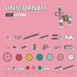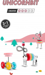 Il magico UnicornBit porta ai bambini un mondo pieno di fantasia e abilità tecniche. Da un unico set puoi costruire 3 modelli diversi – UnicornBit, il fiabesco RobotBit oppure AutoBit – e grazie alla compatibilità con oggetti comuni di casa potrai creare invenzioni uniche e personali.