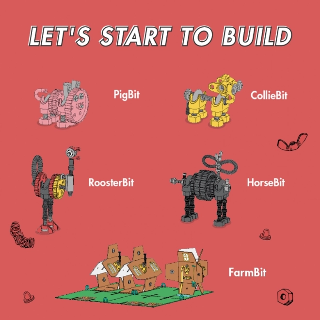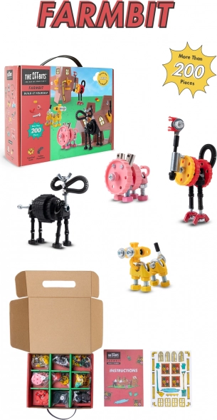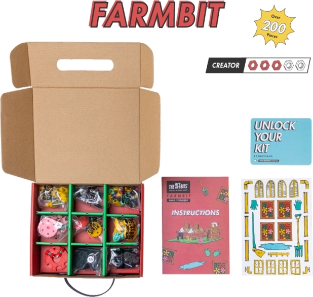 FarmBit è un set di costruzione che offre infinite possibilità per creare una fattoria o una stalla. Il set include più di 200 dadi e viti colorati, permettendo di realizzare modelli unici come Farm animals PigBit, CollieBit, RoosterBit e HorseBit. Solo la tua fantasia pone i limiti alla creazione di altre opere uniche.