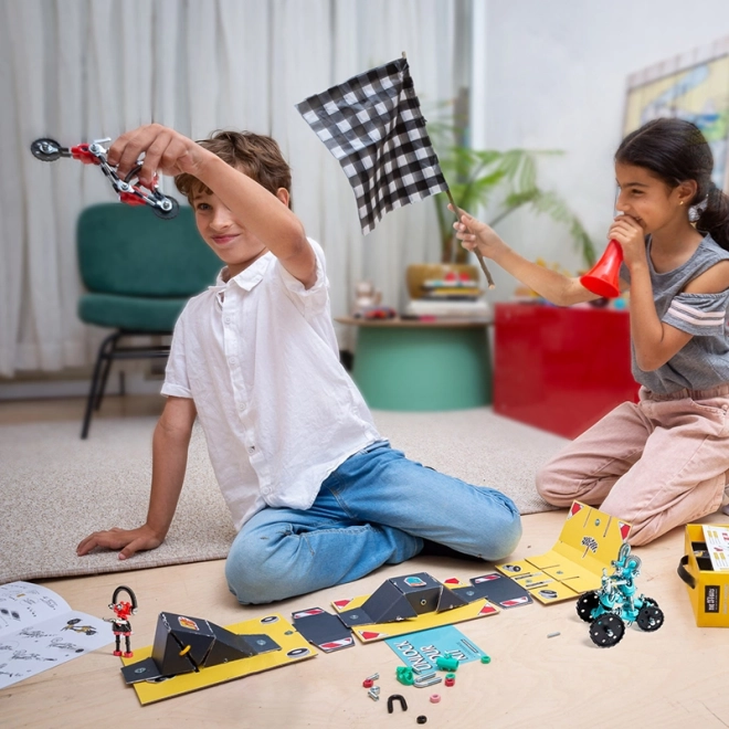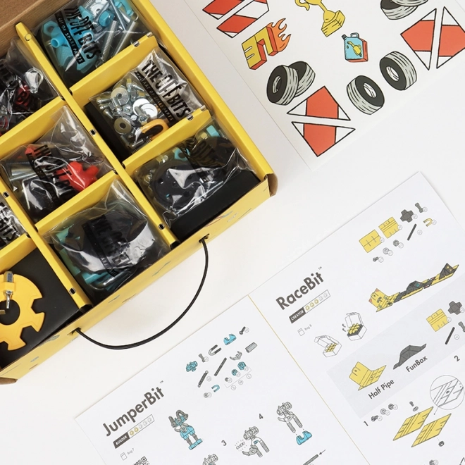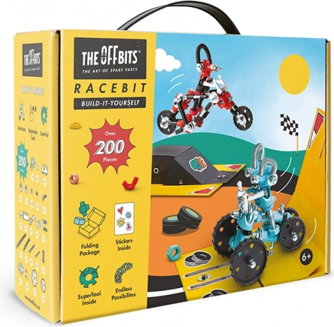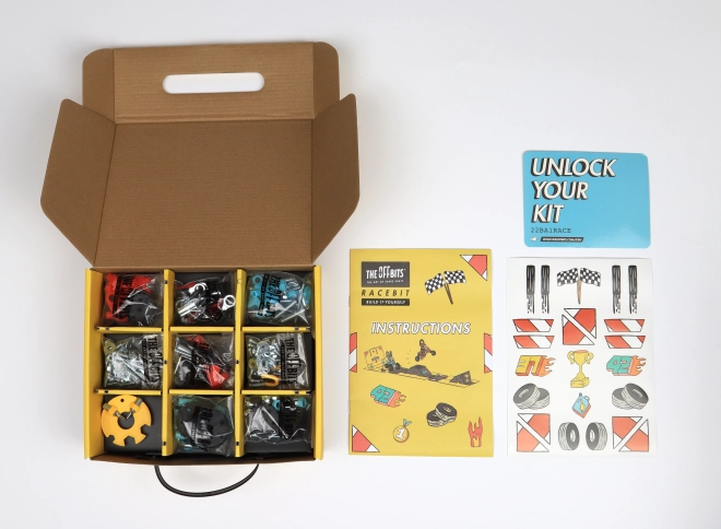 Una parte integrante di OffBits RaceBit è la compatibilità con oggetti di uso quotidiano, che offre ai bambini l'opportunità di creare le proprie invenzioni uniche utilizzando materiali comuni. Inoltre, l'imballaggio di questo set si trasforma in un circuito di gara, aumentando il livello del gioco e intrattenendo i bambini per ore.