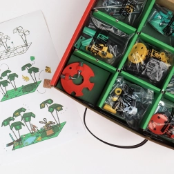 Il set di costruzioni JungleBit porta l'avventura della giungla a casa tua. Con più di 200 pezzi colorati e variegati, inclusi viti e dadi speciali, puoi creare modelli unici o nuove invenzioni secondo la tua fantasia.