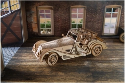 Il modello si distingue per l’abitacolo dettagliato, porte laterali apribili, tetto rigido azionato manualmente con finestrino sul tetto e ruota di scorta funzionante nel bagagliaio. Nella confezione trovi tutto il necessario: i pezzi sono pretagliati e l’assemblaggio è guidato da istruzioni illustrate in 11 lingue. Lascia il legno naturale oppure dipingi il veicolo secondo la tua fantasia.